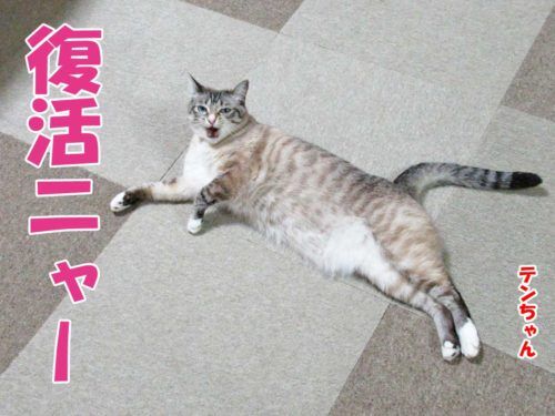 テンちゃんはワタシがPCを触っているとやって来ます。 可愛くない声で鳴いてワタシの隣に置いてあるプリンターに飛び乗ります。 そこから膝の上に移ってワタシのお腹を枕にして寝ます。 昨日はなぜか食べ物の皿をプリンターの上に置き忘れていました。 テ…