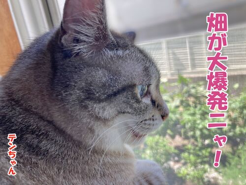 テンちゃんは外を眺めるのが好きです。(猫はみんなそうかな?) 大変ニャ! 何が大変なの? 畑が大爆発ニャ! 爆発って? で、畑に行っていみると もう採らなければいけないほど育った野菜がたくさんでした。 これが数日続いております。 小さな家庭菜園が…